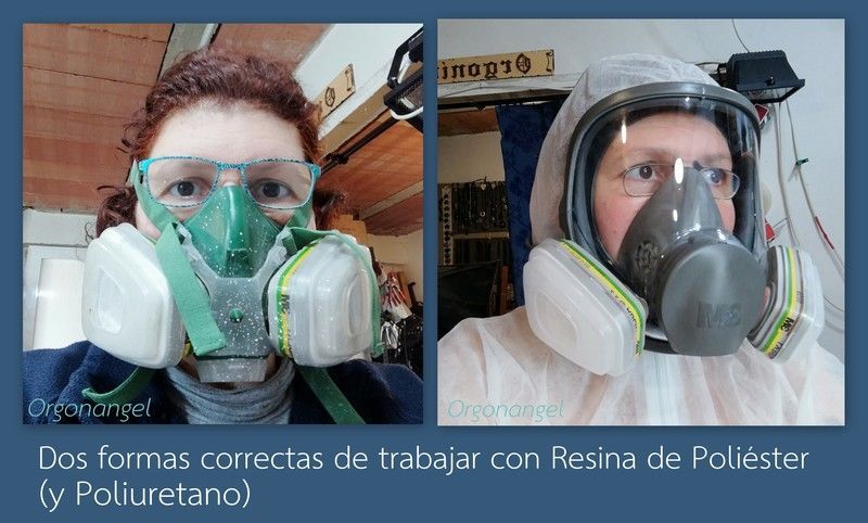 - Una máscara de gas con filtro especial para trabajos con resinas, suelen ser los más caros, pero tu salud es lo primero. Si no tienes una máscara aún, puedes colocarte delante de una ventana abierta y colocar un ventilador detrás de ti. El flujo de aire transportará gran parte de los vapores hacia el exterior. Esto solo es una solución temporal mientras te haces con una buena máscara de gas. Puedes comprarlas en tiendas especializadas en pintura y esmaltes o tiendas que venden equipos de trabajos de alto riesgo.