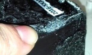 Raspé un poco el filo del bloque grande negro y reconocí ese mismo instante los materiales que se desprendieron. Uno era …. RESINA… y el otro (redoble de tambores) ni más ni menos que VIRUTAS DE ALUMINIO. ¿¡Qué!?
