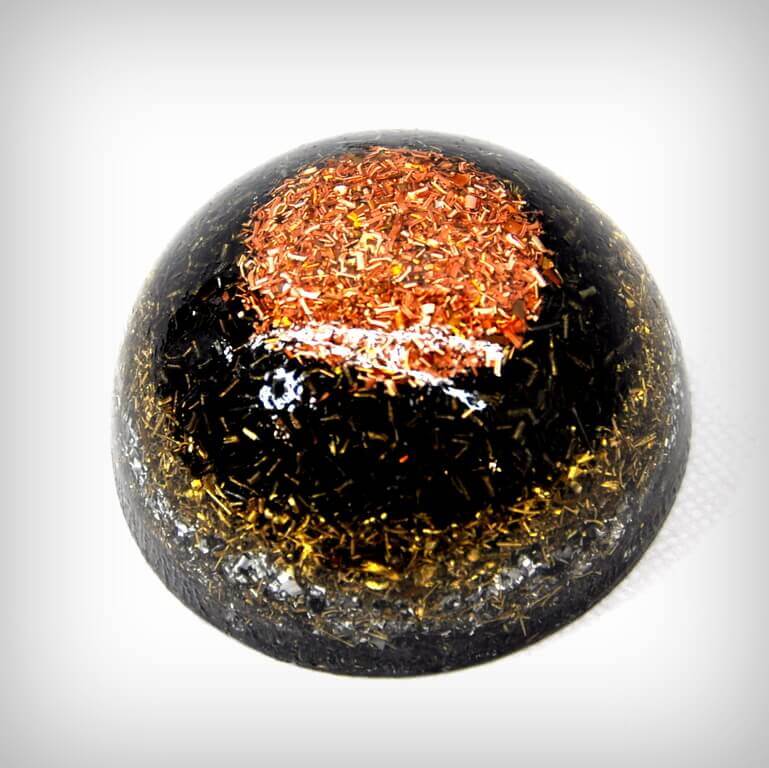 Hay dos tipos: las Ultra-Orgonitas tácticas y las Radionitas / Esoteritas. Las tácticas son simples y no tienen virutas de cobre, como puedes ver en la imagen, mientras que las Radionitas y Esoteritas sí las tienen. El cobre no es ni bueno ni malo. Lo uso en ciertos modelos específicos para acelerar el plasma o para hacer las piezas más elegantes. Hay dos formas de usar el cobre en mi creaciones: