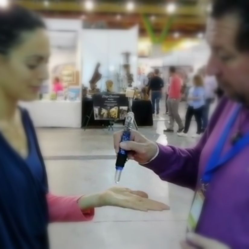 Probé la mini varita con mi tía ya que ella tiene un linfoma mo hodkings y muchos dolores en las manos y la cadera, y ella notó rápidamente como un cosquilleo que la subía por toda la mano y el brazo asi como desde la cadera hasta el pie. Así que está encantada y por eso he decidido comprar la varita grande, para que pueda tener el efecto más rápido.